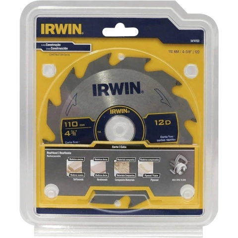 O Disco de Serra Circular 4.3/8 Pol. (110 mm) Corte Rápido e Fino 12 Dentes é indicado para cortes em madeiras macias, duras, compostas e compensadas, conta com dentes alternados ATB apresentando um excelente acabamento e desempenho para cortes transversais e longitudinais.
